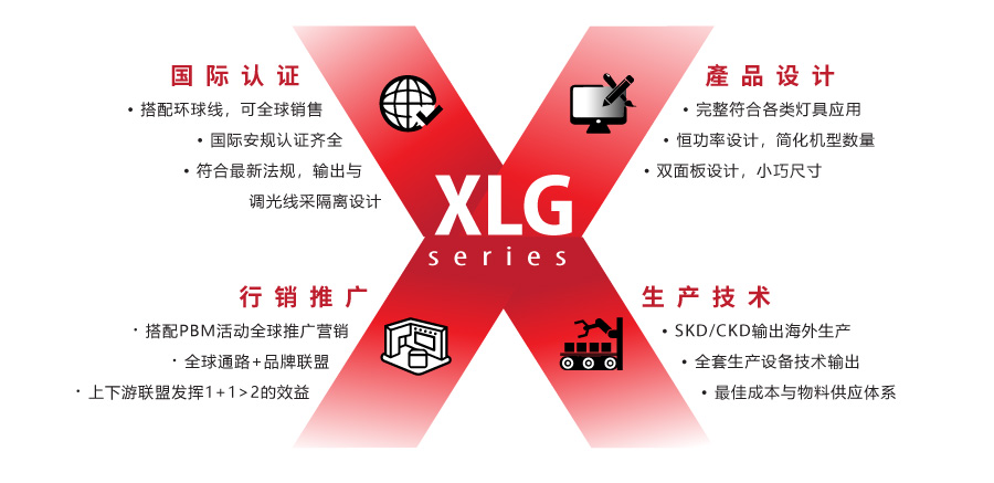 明緯除了持續(xù)秉持開(kāi)發(fā)優(yōu)化性價(jià)比的標(biāo)準(zhǔn)電源來(lái)服務(wù)客戶外,更于今年結(jié)合供貨商及Powered By MEAN WELL(PBM)客戶來(lái)共同營(yíng)銷產(chǎn)品,期許透過(guò)彼此的優(yōu)勢(shì),一起提升競(jìng)爭(zhēng)力,并將彼此的產(chǎn)品共同推廣到全世界。目前XLG全系列已結(jié)合Powered By MEAN WELL (PBM)聯(lián)合營(yíng)銷活動(dòng)進(jìn)行全球推廣。XLG系列不僅在功能上具有規(guī)格優(yōu)勢(shì),更是結(jié)合明緯與客戶間信賴合作關(guān)系的營(yíng)銷代表作,以創(chuàng)新?tīng)I(yíng)銷模式,將產(chǎn)品以SKD/CKD模式出口到海外工廠生產(chǎn),落實(shí)與擴(kuò)大當(dāng)?shù)鼗姆?wù),詳情可參見(jiàn)LED創(chuàng)新系列營(yíng)銷活動(dòng)。