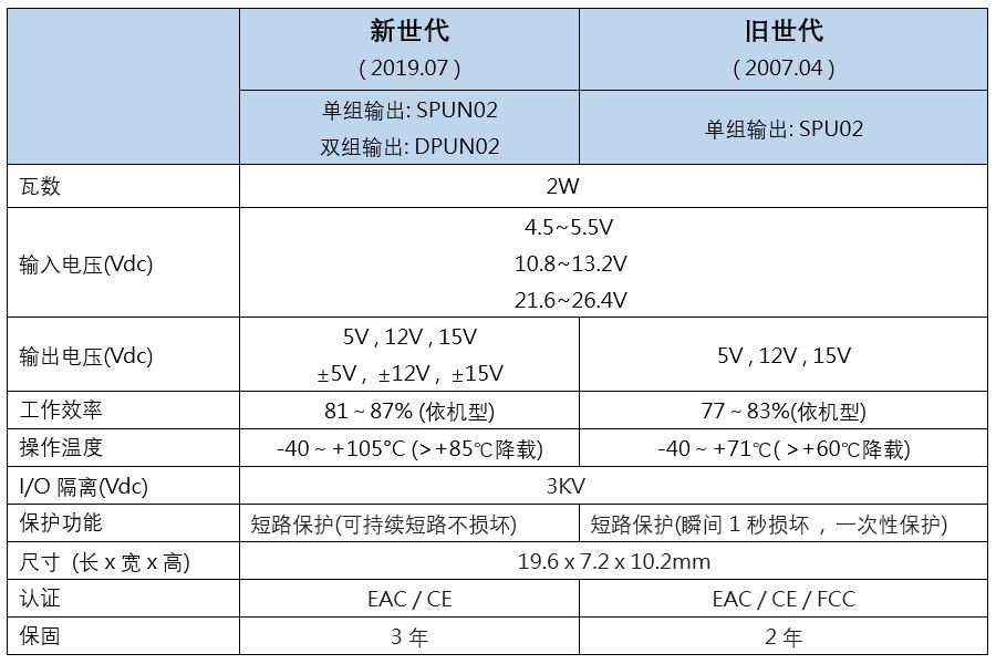 為讓用戶快速了解本產(chǎn)品特點(diǎn)與前一代SPU02規(guī)格差異,請(qǐng)參考以下比較表: