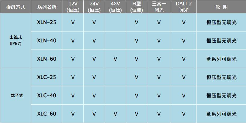 XLN/XLC 系列:25W/40W/60W 智能調光 LED 驅動電源